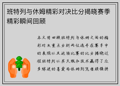 班特列与休姆精彩对决比分揭晓赛季精彩瞬间回顾